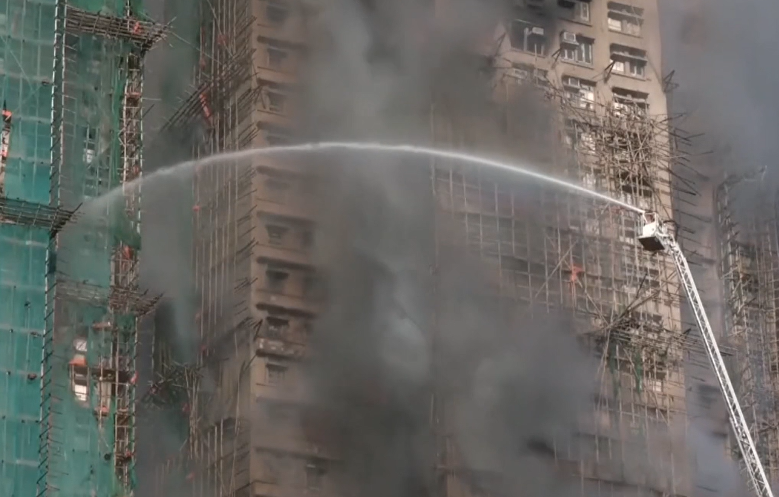 According to the BBC, the fire spread to nearby skyscrapers. It is believed that the flames were carried by bamboo scaffolding attached to the exterior of the buildings. Emergency response teams were dispatched to the scene. The complex houses 4,600 residents and contains around 2,000 apartments.